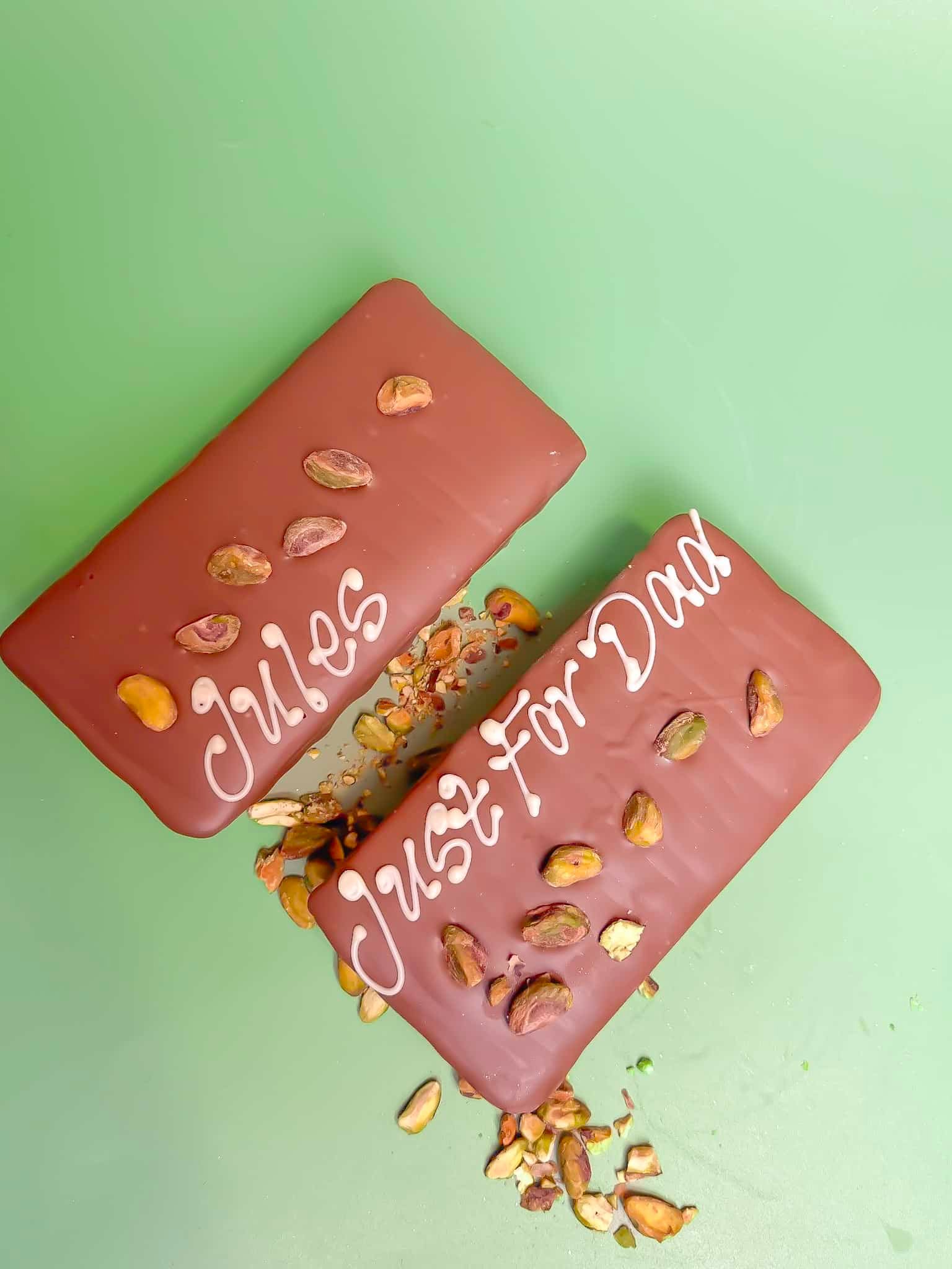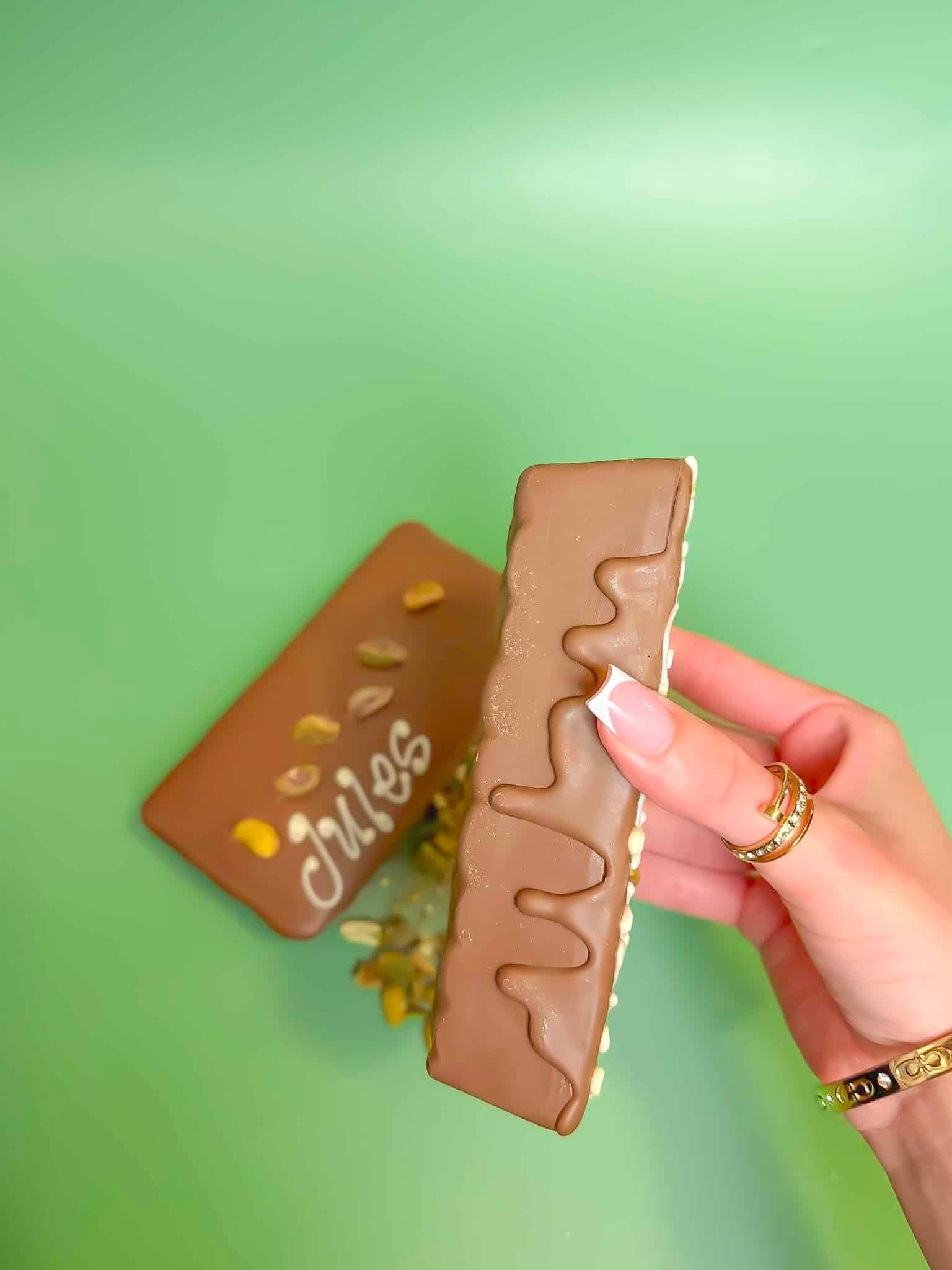 Our bestseller and a true customer favourite. The Pistachio & Kunafah Chocolate Bar is inspired by the famous Dubai-style chocolate, combining rich, nutty pistachio flavours with layers of crispy kunafah, all wrapped in smooth Belgian milk chocolate.