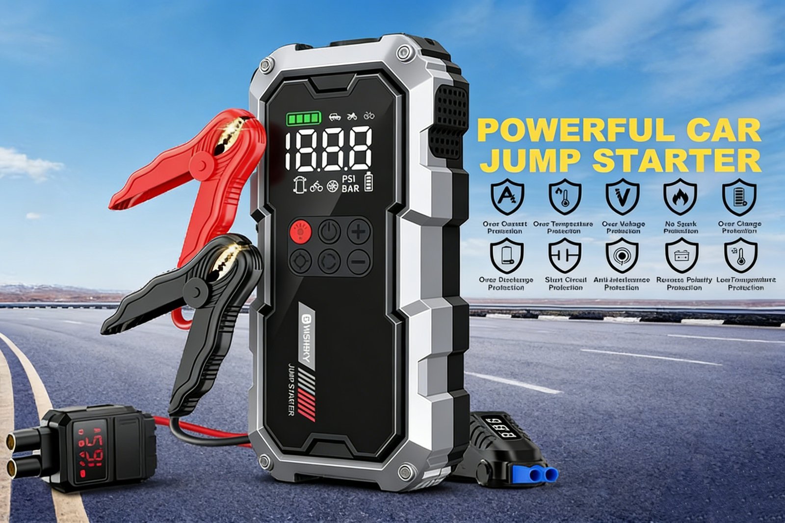 El arrancador de bater¨ªa port¨¢til Wishsky 9000A con compresor de aire es genial, dos funciones en uno y una salvaci¨®n en situaciones de emergencia.