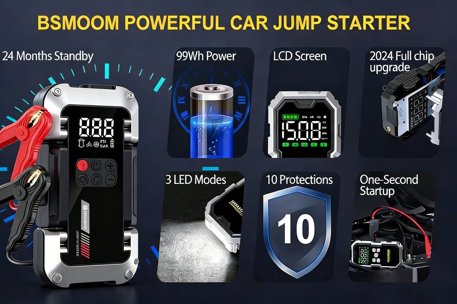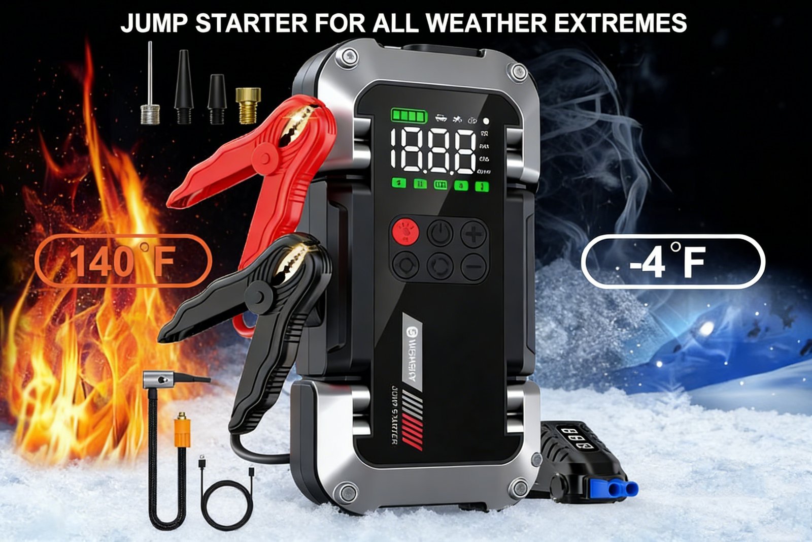 Potencia de 9000A, arranca coches, camionetas y motos sin problemas, incluso con bater¨ªas completamente agotadas.