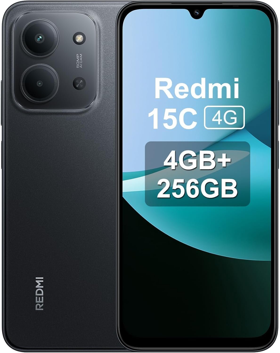 Xiaomi Redmi 15C Smartphone 4+256GB Cámara Dual AI 50MP Pantalla 6,9″ 120 Hz Procesador Octacore Batería 6000 mAh Negro Versión ES